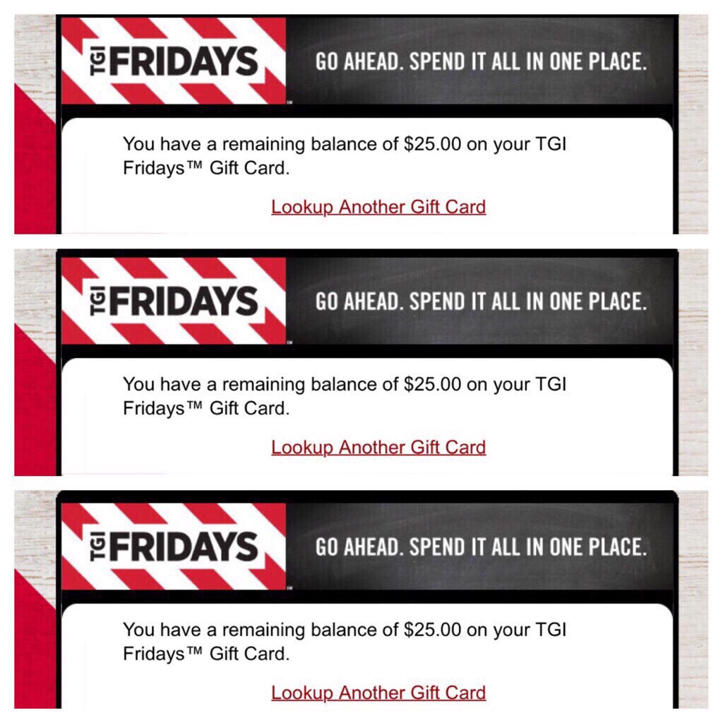 Tgi Fridays Gift Card Balance - Over 931 restaurant bar and grills in 60+ countries.. It cannot be redeemed for cash or applied as payment to any account unless required by law. Leftover balance remains loaded on the card or voucher. (2 days ago) tgi fridays gift card 100$ value in 25% off price. For more information about the tgi fridays™ gift card or to check the balance, please visit www.tgifridays.com. Explain that you want to know the remaining balance on your gift card.